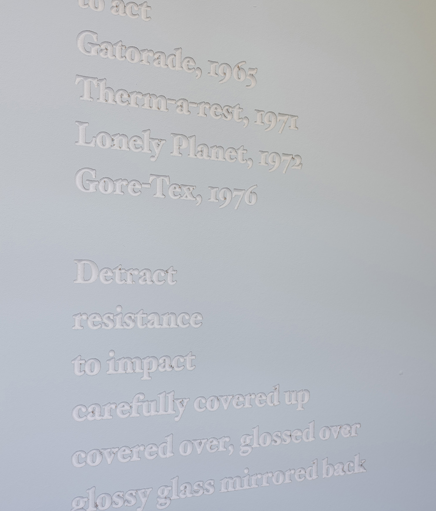 Installation view Leave No Trace (poem), 2016-2023, CNC routed drywall, dimensions variable
